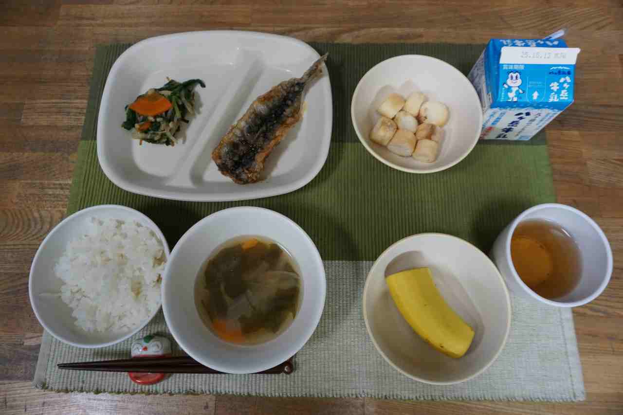 ご飯 いわしのかば焼き ほうれん草のかき醤油和え みそ汁