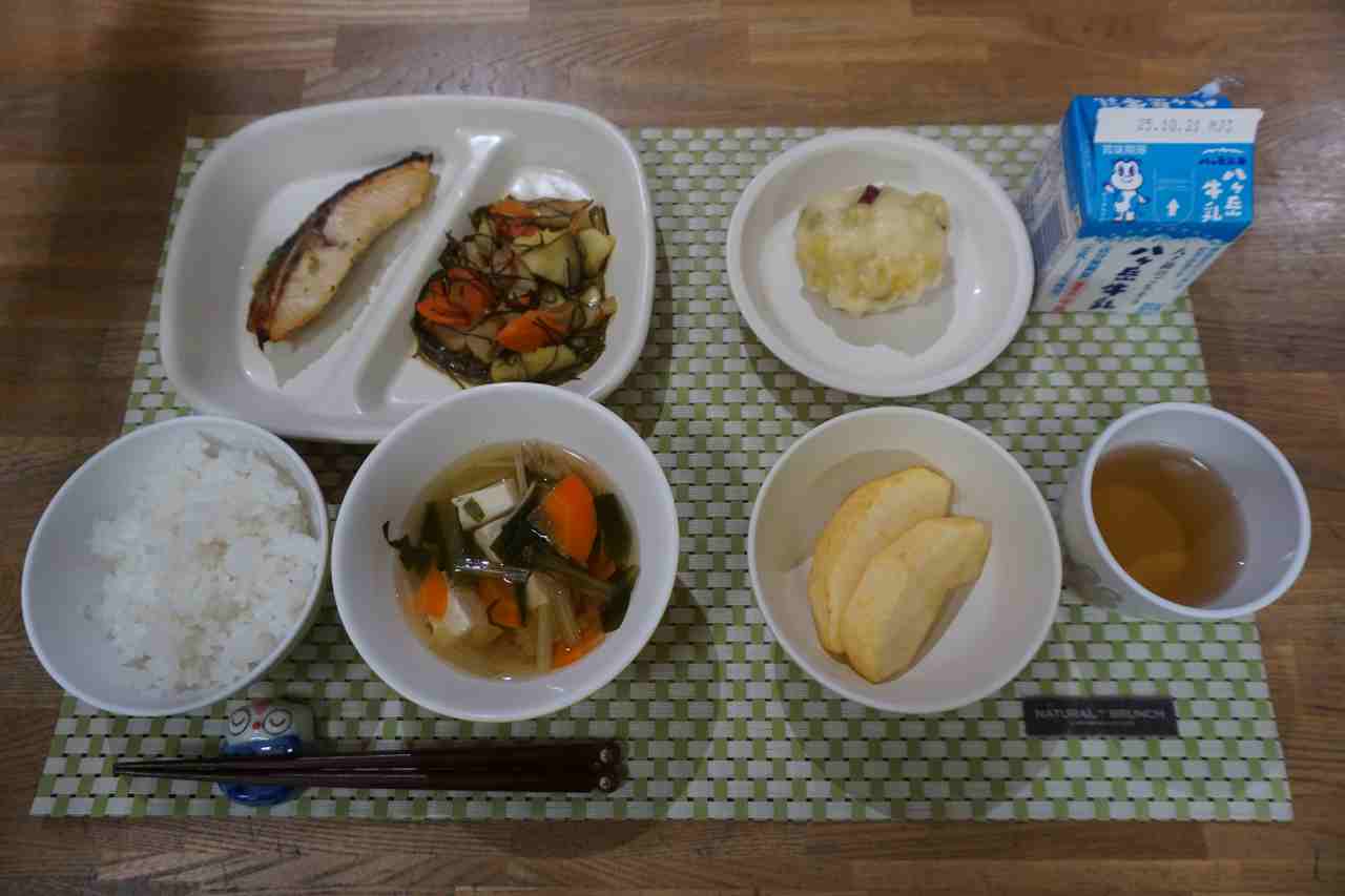 ご飯 かじきのごま焼き じゃが芋のきんぴら みそ汁