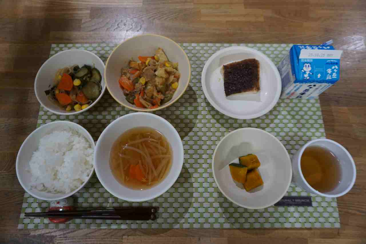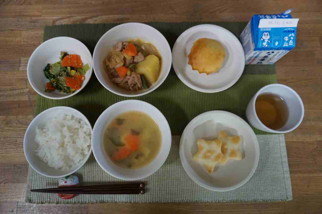 ご飯 肉じゃが 小松菜とコーンのごま和え みそ汁