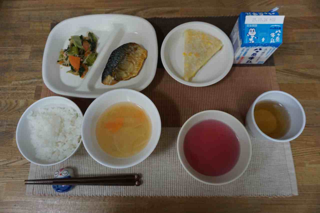 ご飯 鯖の塩焼き チンゲン菜のごま和え みそ汁