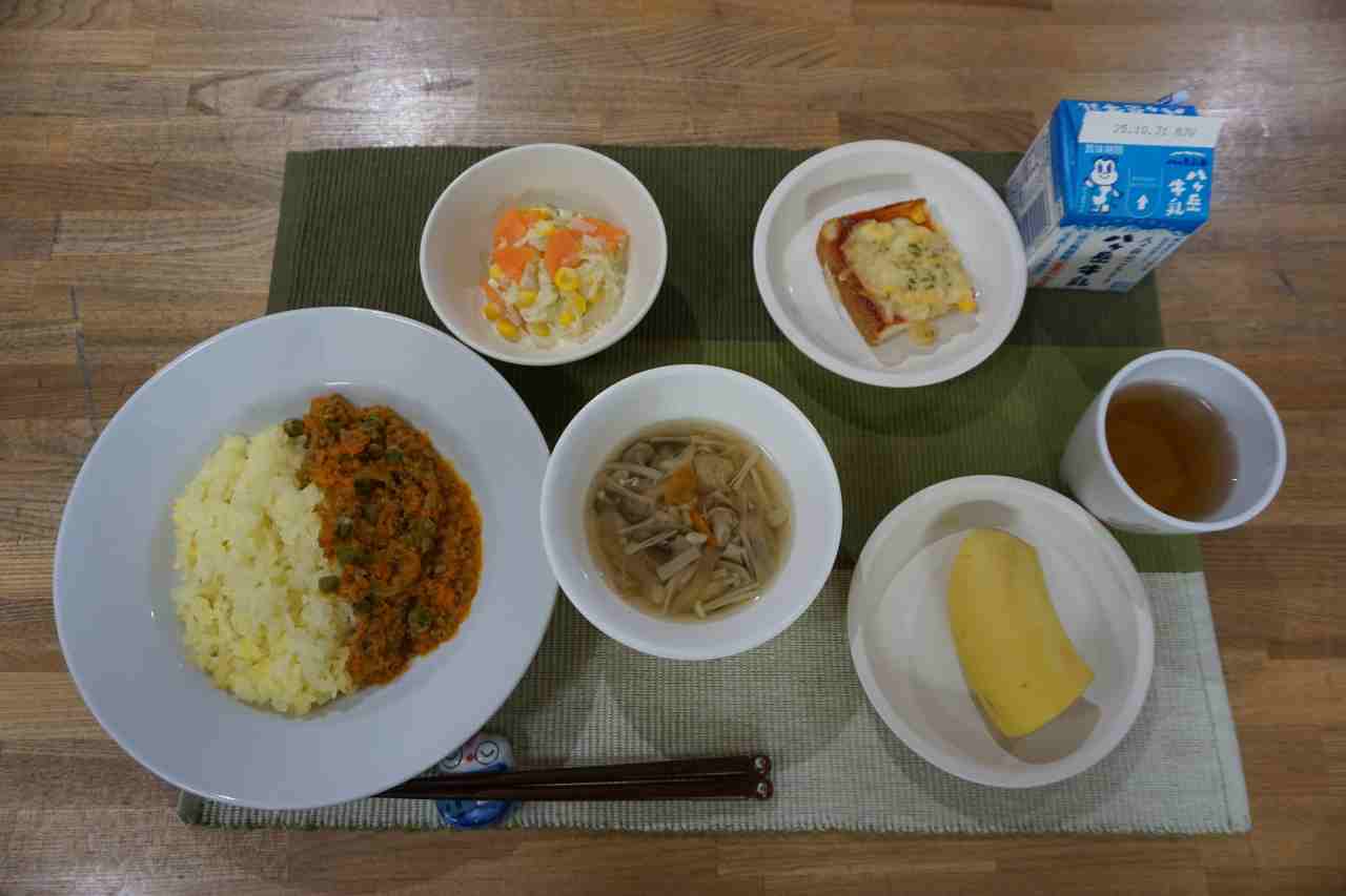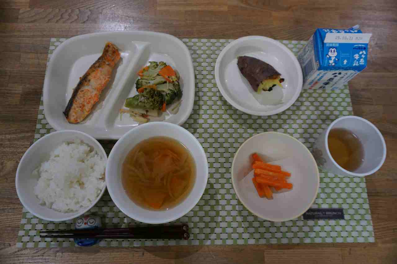 さつま芋ご飯 鶏肉のマヨカレー焼き ツナコーンサラダ すまし汁