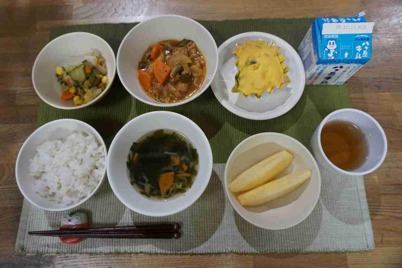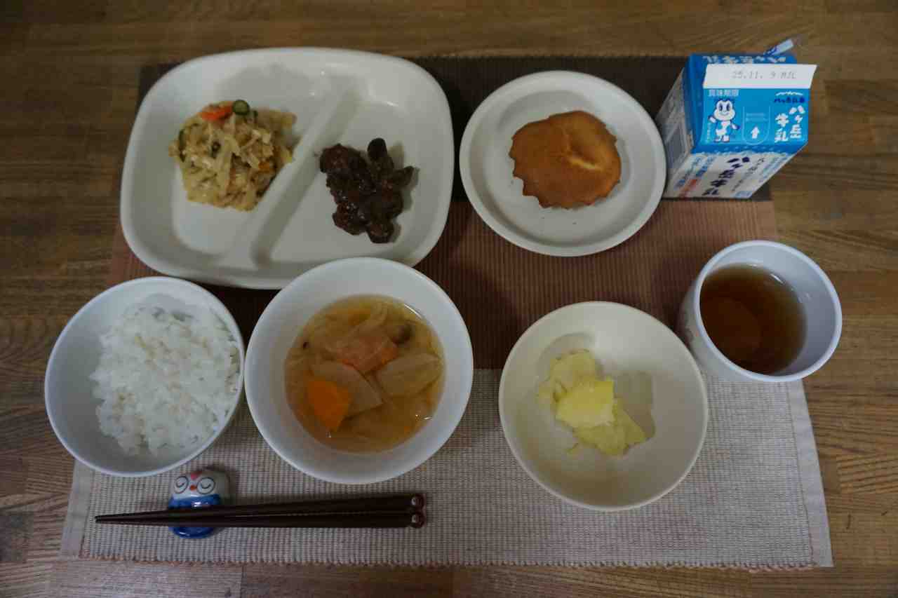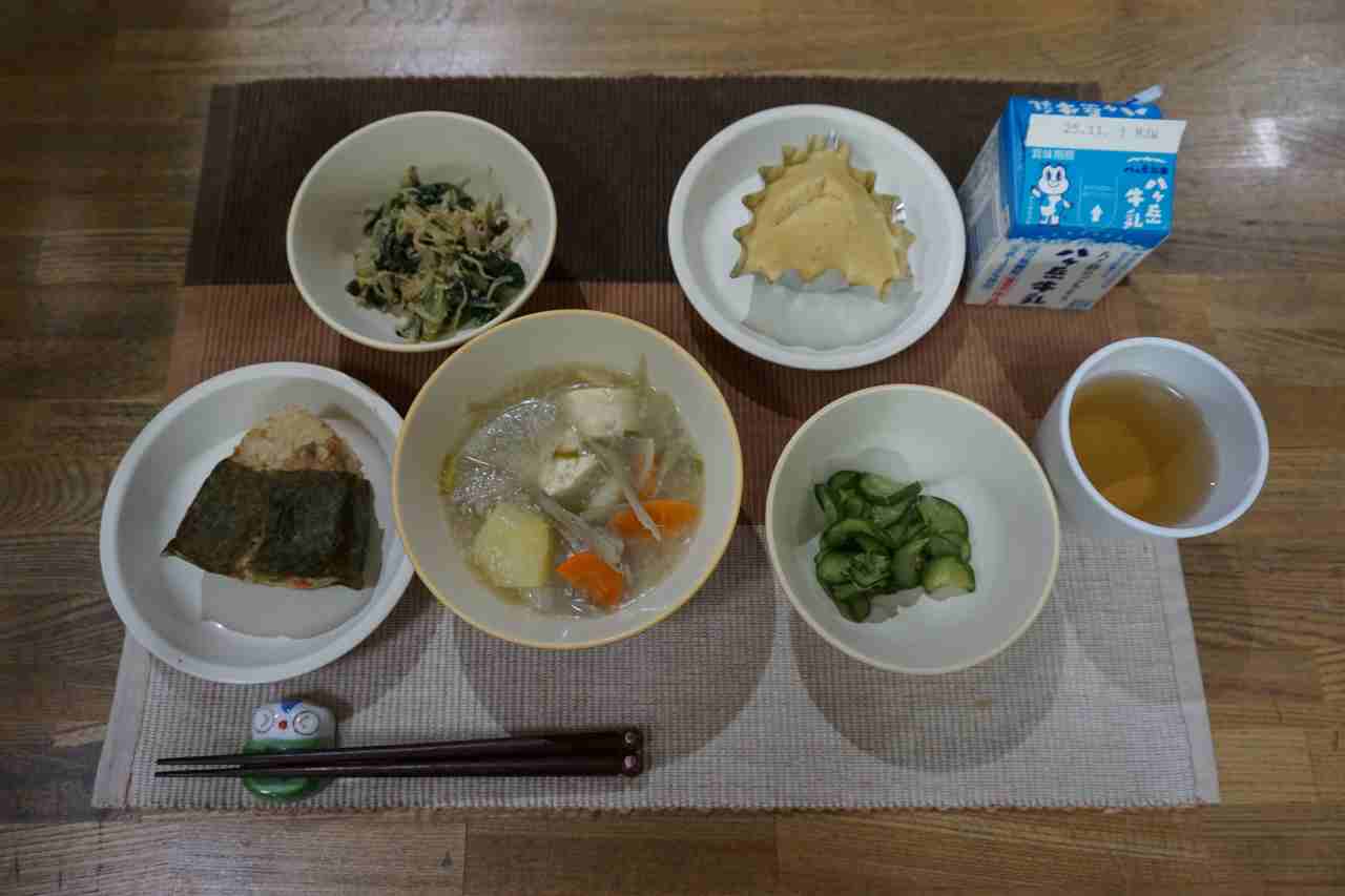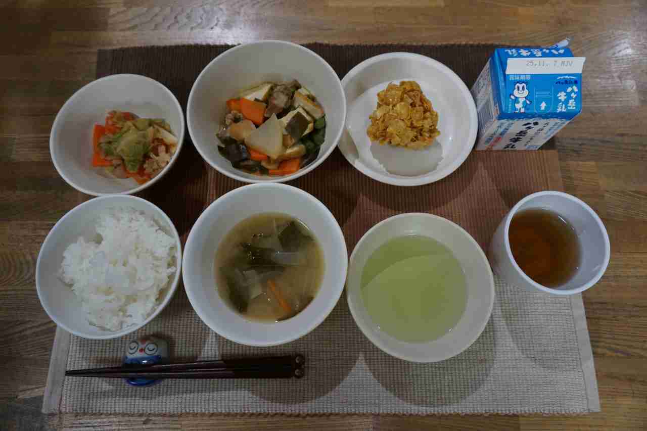 ご飯 鶏肉と昆布の煮物 ツナキャベツ みそ汁