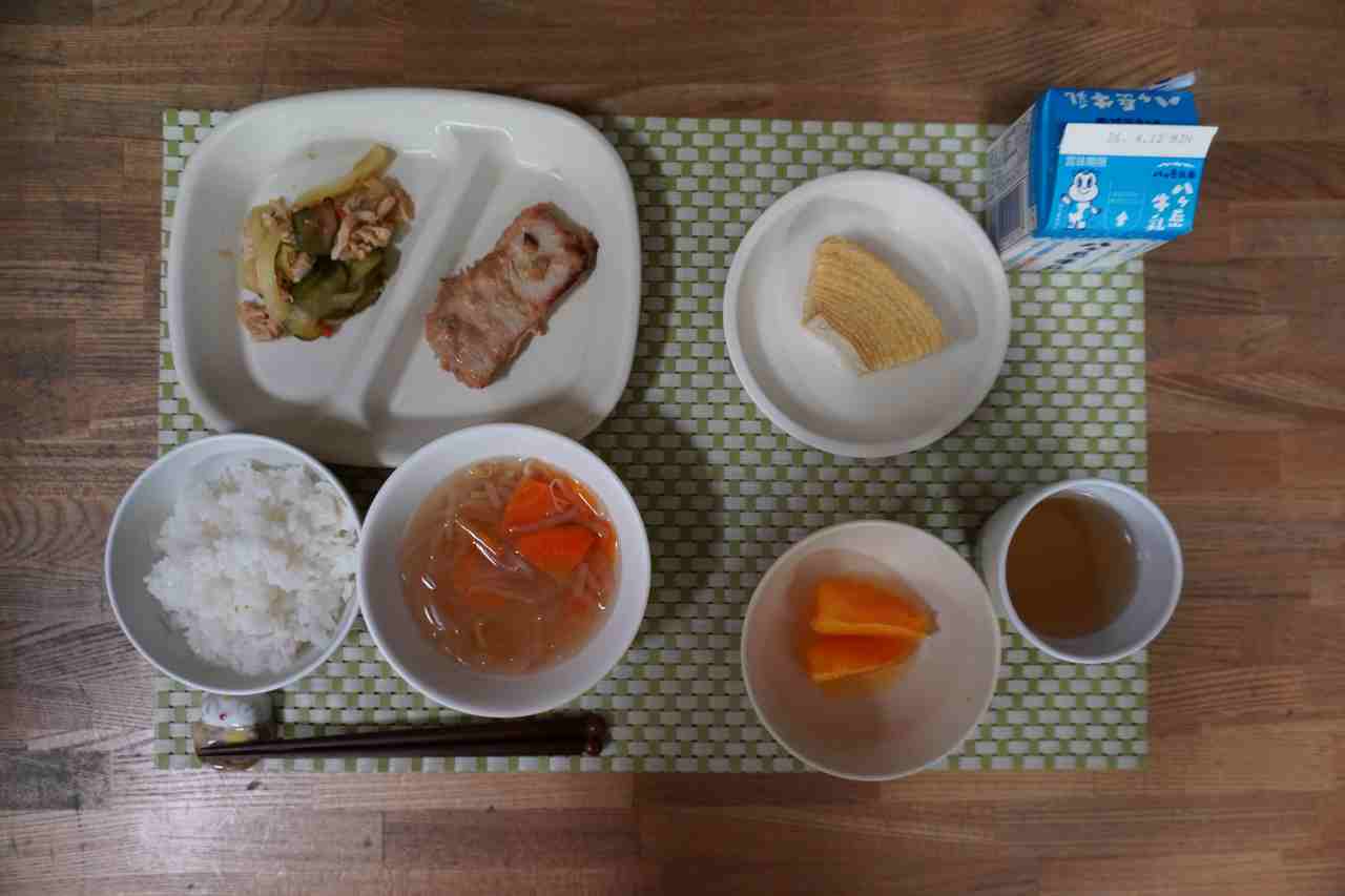 | お昼 | ご飯 かじきのみそ焼き ささみときゅうりのサラダ 春雨スープ |
